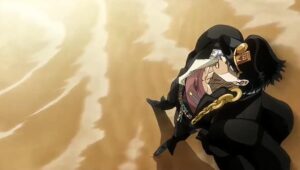 最後のシーンはムハンマド・アリ・モスクから砂漠に切り替わり、日の昇った砂漠にひとりたたずみ遠くを見つめる承太郎から始まります。