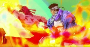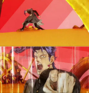 まさに花京院の最期そのものですよね~…バラバラになる直前にザ・ワールドの姿が現れるのは、特殊オープニングだけの演出です。