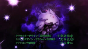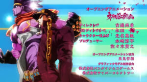 スタッフさんのお名前がところどころ「オラ」などの擬音に!ジョジョアニメおなじみの小ネタですが、こちらのオープニングの間にも色々な文字に変化が現れています。