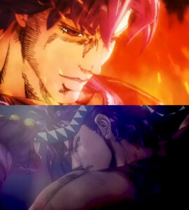 続いて右手に波紋が流れているジョセフが登場。承太郎に切り替わる直前には、「うけとってくれーッ」の顔を彷彿とさせるシーザーの姿が映し出されます。