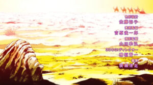 アヴドゥルがいるため原作とは少し違いますが、右に墜落した飛行機が描かれているので死神13戦の砂漠が舞台のようです。この後天の川のような満天の星空と朝日を眺めるシーンへ切り替わりますが、死神13戦が行われたサウジアラビアでは、天の川を綺麗に見ることができるのだとか。