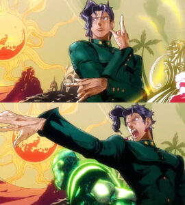 こちらは承太郎戦でのポーズにそっくり!なお原作ではまだブ男顔。