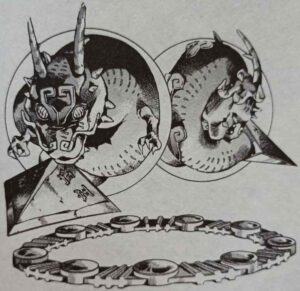 最後に美術的な元ネタについて少しだけ…ドラゴンズ・ドリームは髭や頭部などに特徴的な文様が見られました。この元ネタは中国の青銅器の饕餮文じゃないかな~!饕餮文とは人を食したり、邪悪なものを取り除くパワフルな饕餮という獣を文様化したものです。例えばこちら。