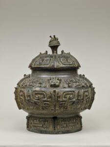 器の周囲のくるくるとした模様のほか、蓋もとぐろを巻く龍と考えられているのだとか。ちなみに饕餮文には色々な動物が形作られたものがあります。日本では根津美術館所蔵の「双羊尊」や泉屋博古館所蔵の「虎卣」などがその一例。めちゃくちゃかわいくないですか…?