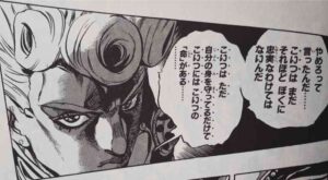 気温、湿度、敵のスタンド能力を正確に捉え、生物を生み出す能力に変化したことから読み取れるジョルノのSeの成長。最初から完成された人間性のように見えたジョルノですが、ブチャラティチームへの加入をきっかけに内面のアップデートがされていたんだろうな~!