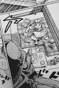 見方によっては下降していく運命に対し、溶岩の力で再上昇を目指していると言うこともできます。が、キー・ウエストに当たり散らしたりと、ピンチに向き合う覚悟がなさそうだしな~…荒木先生も「上昇下降を繰り返す主人公は嫌い」と公言しているしな~…ジョディオサイドにつくことはなさそうな人物です。