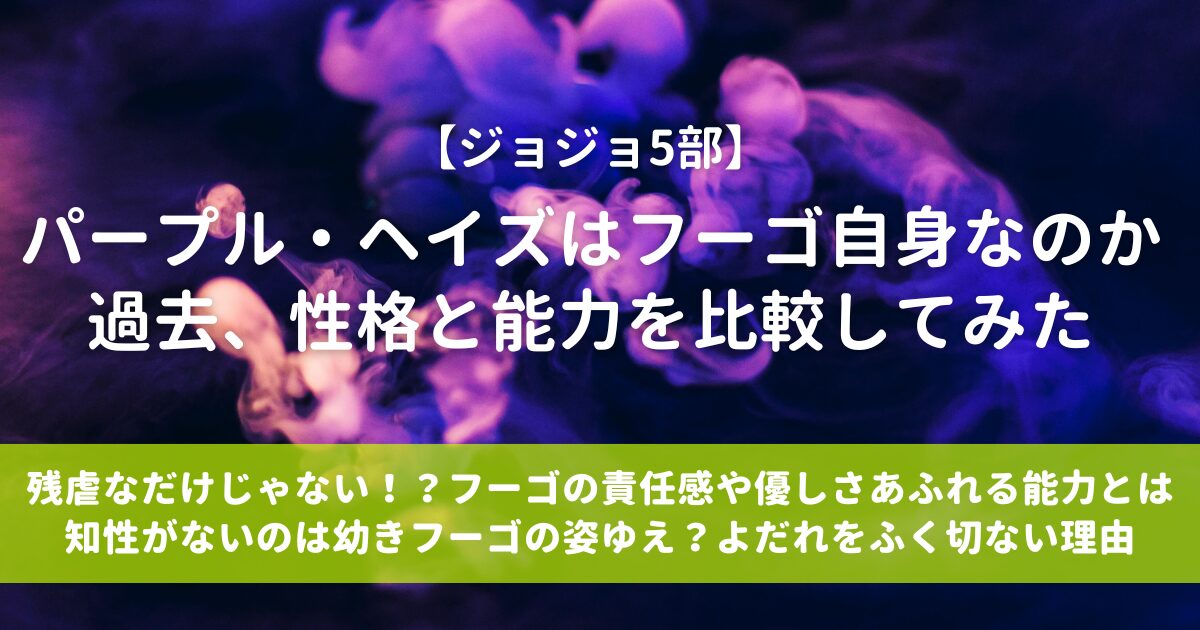 今回はパープル・ヘイズの能力、クセ、外見などについて、フーゴと比較しながら考察してみました。
