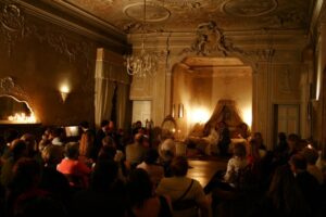 露伴たちがリゴレットを鑑賞した場所は「バルバリーゴ・ミノット宮」。元々は2つにわかれていた宮殿を1つにまとめ、オペラ劇場などとして使用されています。オペラはもちろん、ティエポロなどによる絵画作品や豪華な装飾も楽しめる宮殿です。