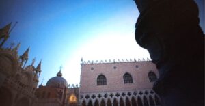 こちらはサン・マルコ広場(この場所だけピンポイントに「サン・マルコ小広場」と呼ばれることも)で、左はサン・マルコ寺院、右はドゥカーレ宮殿です。場所的にはこのあたりかな。