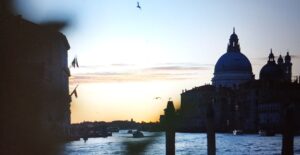 対岸の右にはディアボロが待っていたサン・ジョルジョ・マッジョーレ教会、左にはリサリサ先生が現れた場所かもしれないゴンドラ乗り場があります。ヴェネツィアの南部を一望できるいいスポットでは…!?