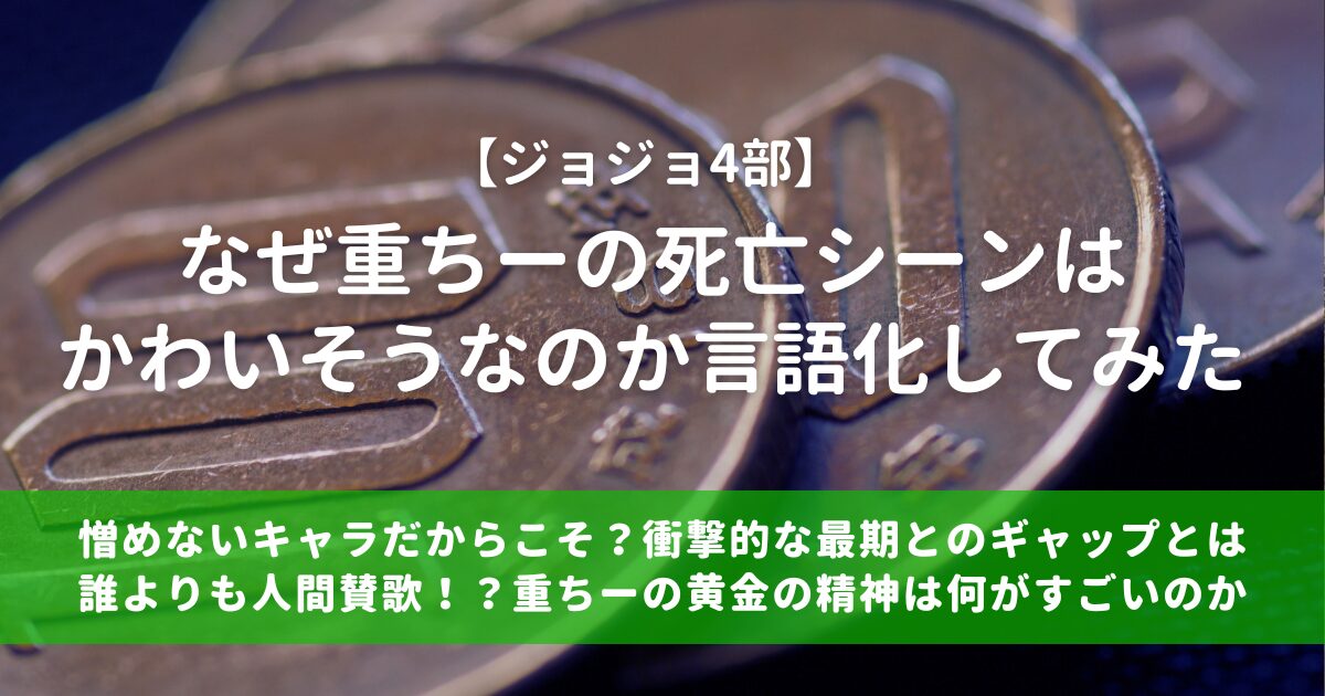 独特なキャラクターと死亡シーンが印象的でしたが、今回は重ちーの死がなぜかわいそうと感じてしまうのか言語化してみました。
