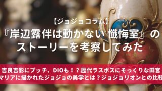 ジョジョコラム 映画『岸辺露伴は動かない 懺悔室』とジョジョの哲学を比較、考察してみた 田宮は歴代ラスボス集合体!?露伴とマリアはジョジョの美学そのもの?ジョジョリオンの呪いとの比較など『岸辺露伴は動かない 懺悔室』とジョジョを比較、考察してみました。 2025.10.07 ジョジョコラム