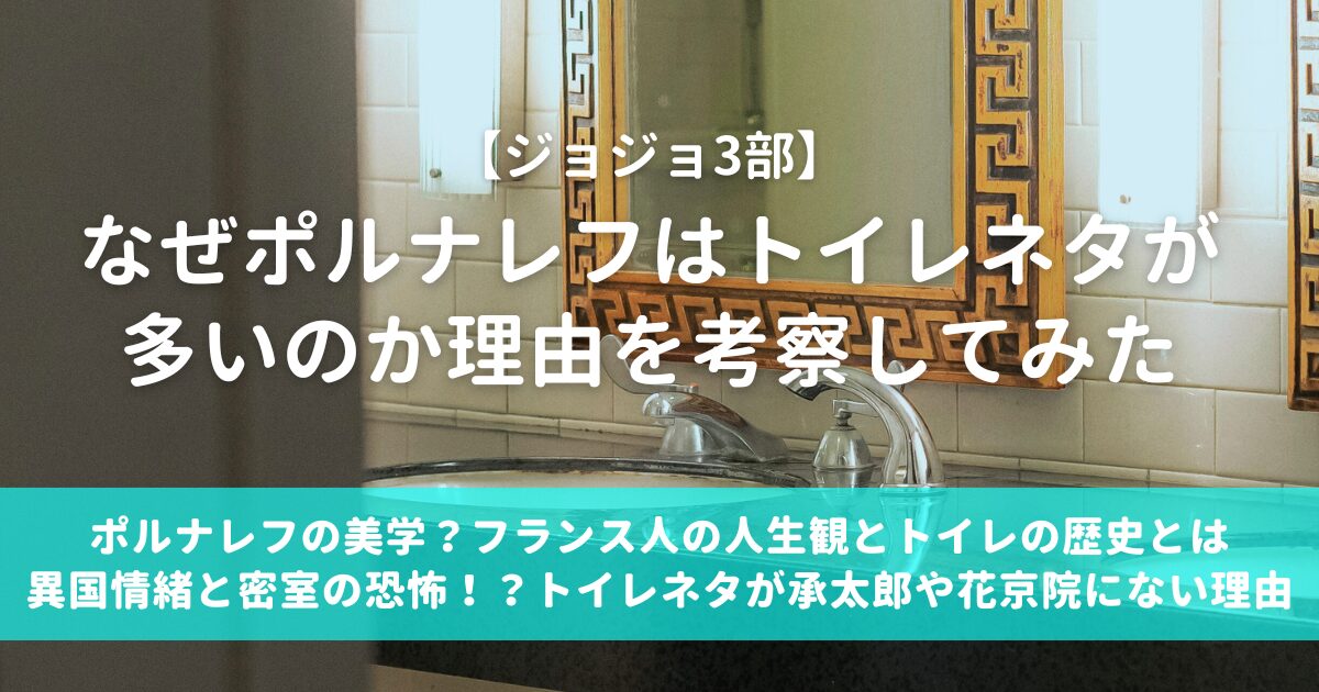 今回はなぜポルナレフにはトイレの災難ネタが多いのか、フランスの美学やトイレの歴史から理由を考察しました。